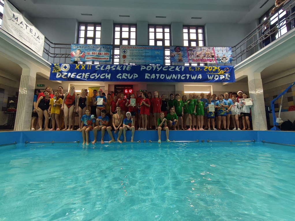 Dnia 6 grudnia 2025 na Pływalni Miejskiej w Siemianowicach Śląskich odbyły się XXII Śląskie Potyczki Dziecięcych Grup Ratownictwa WOPR. Do rywalizacji przestąpiło sześć drużyn. Potyczki otwarła Pani Beata Gałecka Drugi Zastępca Prezydenta Miasta Siemianowice Śląskie.
